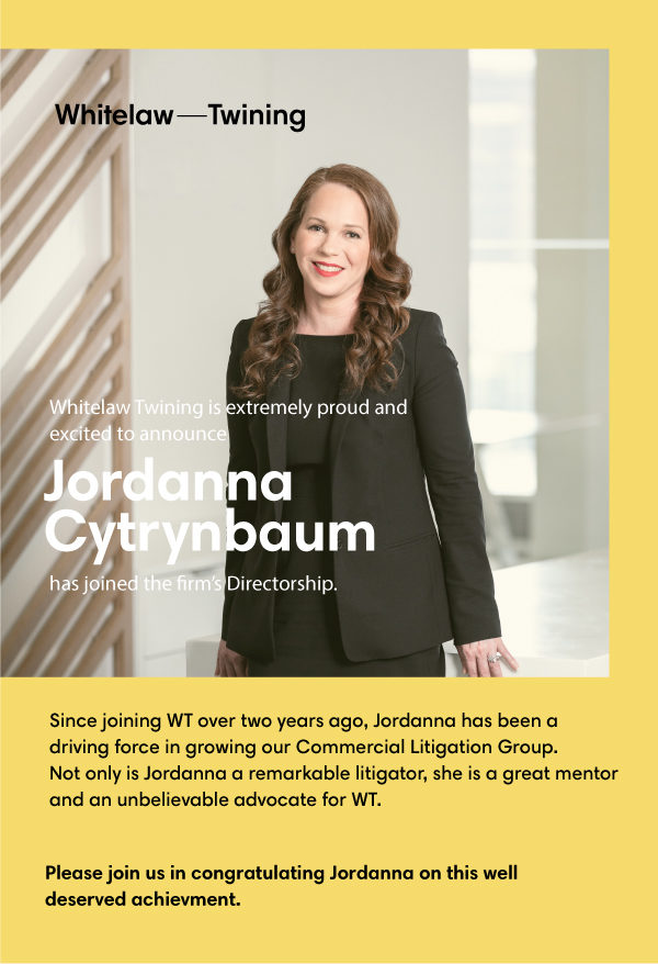 Home — Updates Whitelaw Twining is extremely proud and excited to announce Jordanna Cytrynbaum has joined the firm’s Directorship 1 16 2020 Print Share: