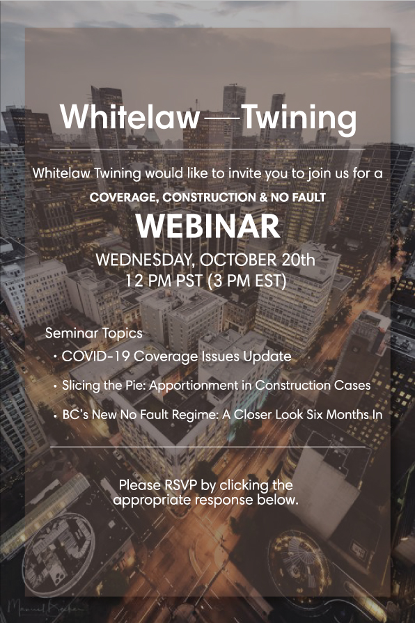 Home — Updates Whitelaw Twining would like to invite you to a Coverage, Construction & No Fault Webinar on October 20th! 9 22 2021 Print Share: